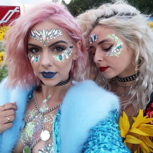 シルバーのシャドウやストーンでデコレーションしたクリスタルメイクが