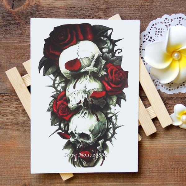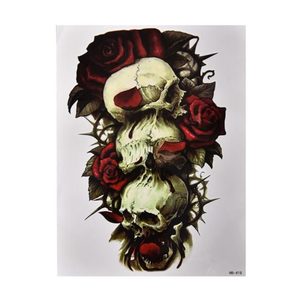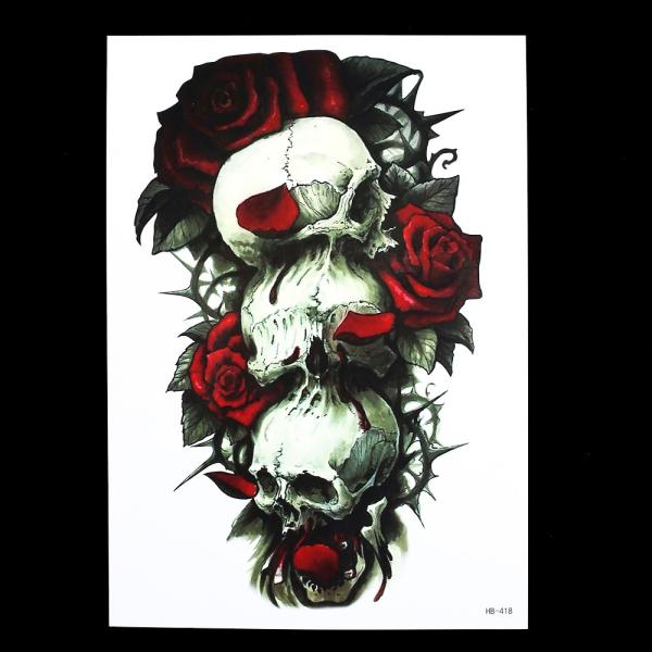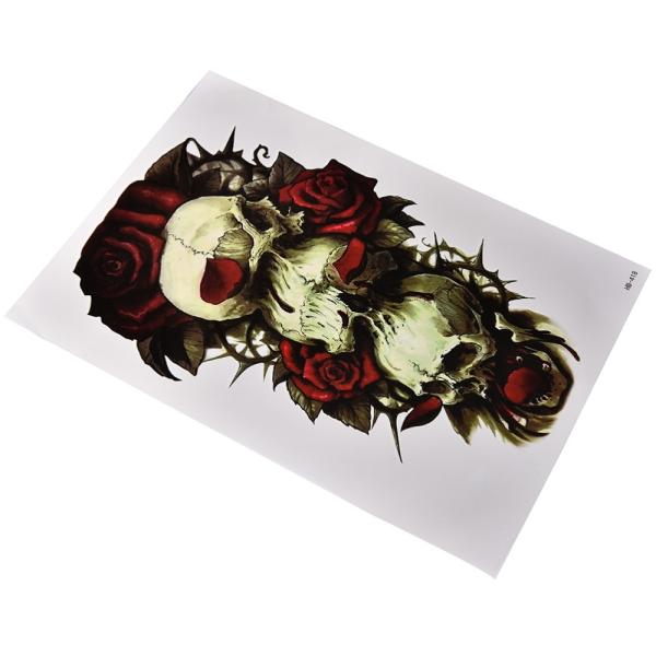 タトゥーシール メンズ リアル 防水 スカル 髑髏 ドクロ 薔薇 花 赤い薔薇 刺青 入れ墨 フェイク 墨 ボディシール 大判サイズ ボディーアート タトゥー TATOO