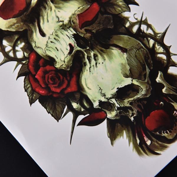 スカル タトゥーシール 髑髏 ドクロ モノクロ 薔薇 赤い薔薇
