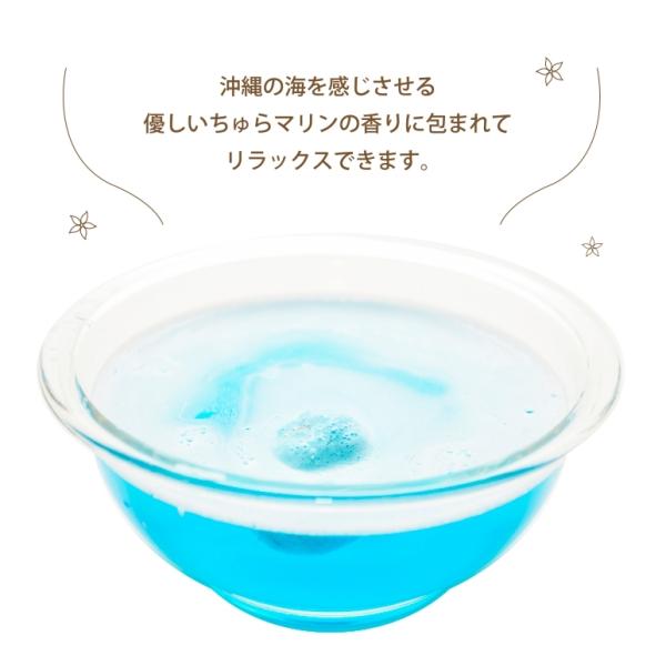沖縄の海を感じさせる優しいちゅらマリンの香りでお風呂の中でいつでも海気分♪鮮やかな色味といい香りでテンションが上がります◎