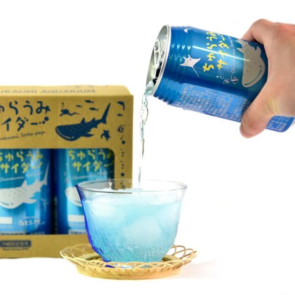 沖縄の青い海、青い空を連想させる綺麗な美ら海ブルーの「ちゅらうみサイダー」