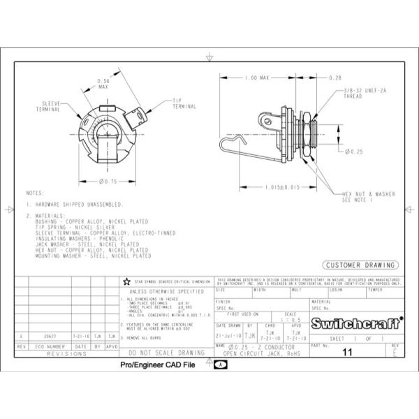 モントルー ギタージャック Switchcraft mono jack #11 No.800 モノラルジャック ギターパーツ Montreux。※ギターパーツの取り扱いには、相応の技術と知識が必要になります。自己責任にて取り扱い可能な方のみ、ご検討下さい。取り付け時に起った、楽器及びパーツの破損・損傷等につきましては当店は保証出来ません。あらかじめご了承下さい。大定番のモノラル・ジャックです。Made in U.S.A.-Montreuxが長きにわたる経験と実績でプロデュースするオリジナルパーツMontreuxが20余年に渡って関わってきたギタープロダクツの経験から生まれた、アイディア溢れるオリジナルパーツが、Montreux Selected Parts。これまでありそうでなかったものやコンポーネントとしては売られていても単品では手に入りにくかったもの、豊富な知識の蓄積を反映した画期的なパーツなど、誰もが待ち望んでいた商品の数々が、今ようやくギターユーザーの手元に。(注)各パーツのボディへの取り付けは、リペアショップ・工房のプロフェッショナルへの依頼をお薦め致します。