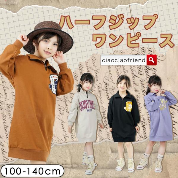 ワンピース スウェット 子供服 キッズ 女の子 ワンピ スウェットワンピ ワンピ ハーフジップ プリント 綿