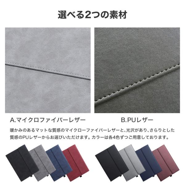 暖かみのあるマットな質感のマイクローファイバーレザーと、光沢があり、さらりとした質感のPUレザーからお選びいただけます。