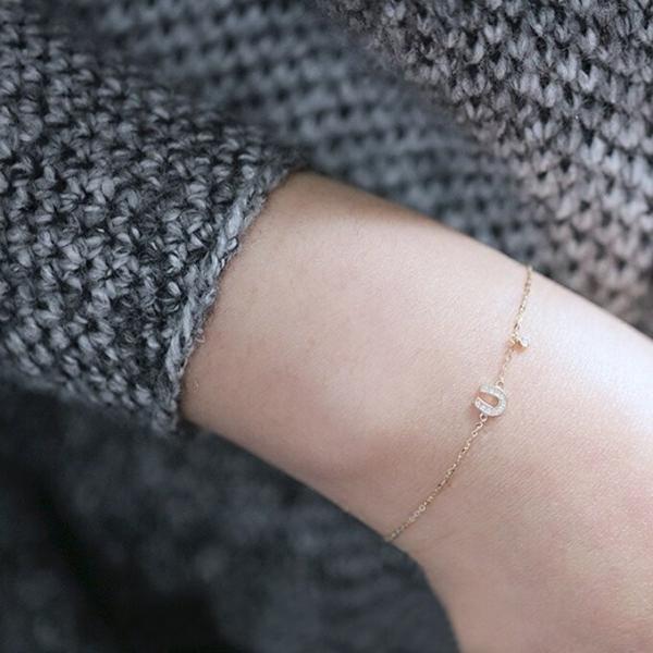 S925純銀製 14kgp 繊細 U字 蹄鉄 馬蹄形 ブレスレット 金属アレルギー対応 つけっぱなし ギフト 職場アクセサリー プレゼント 妻 彼女 娘 母 ご褒美 レディース
