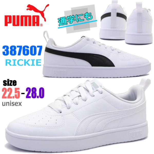 即納 PUMA リッキー メンズ レディース ユニセックス スニーカー 白靴 真っ白 通学 コートタイプ No.387607