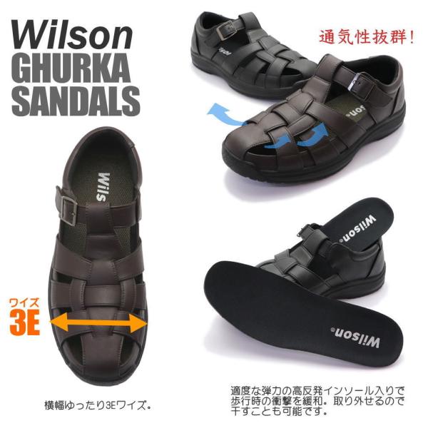 即納 メンズ カメサンダル 幅広 3E グルカサンダル カウンター付き ゆったりワイズ ドライビングシューズ 通気性 Wilson ウィルソン No.3630