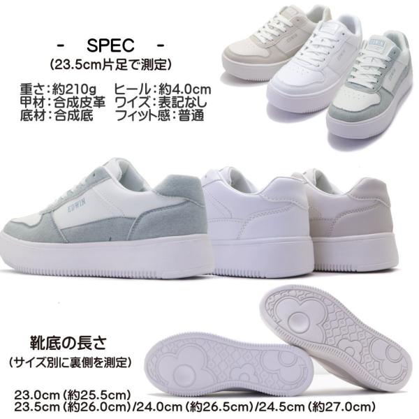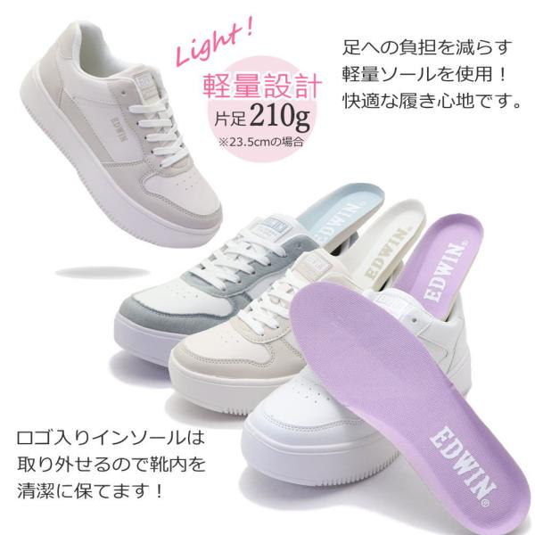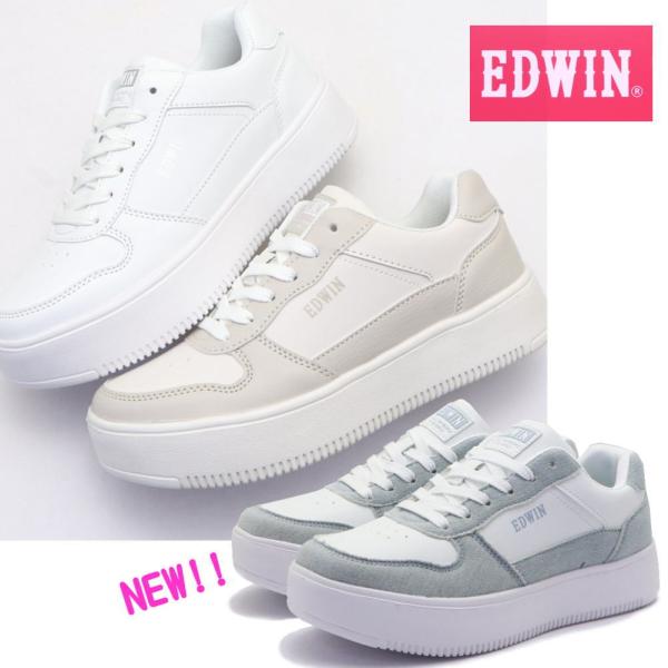 レディース スニーカー 厚底 EDWIN エドウィン 軽量 ホワイトソール カジュアル No.4324