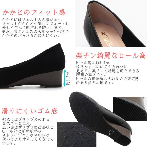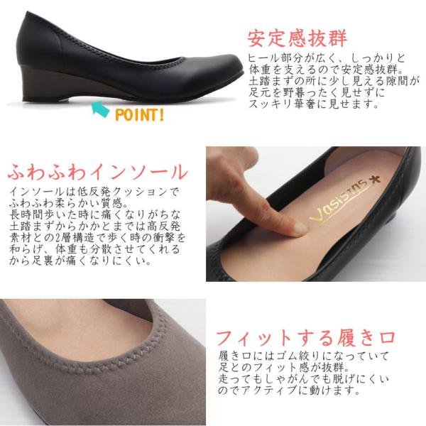 即納 パンプス 痛くない 外反母趾 幅広設計 ふわふわインソール 日本製 ローヒール ウェッジソール ラウンドトゥ No.5506 No.5516