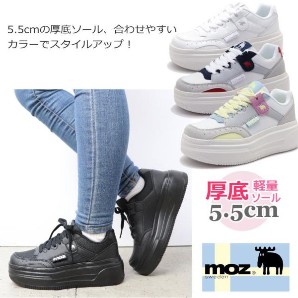 即納 MOZ モズ レディース スニーカー 厚底 軽量 レースアップ カジュアルシューズ No.3025