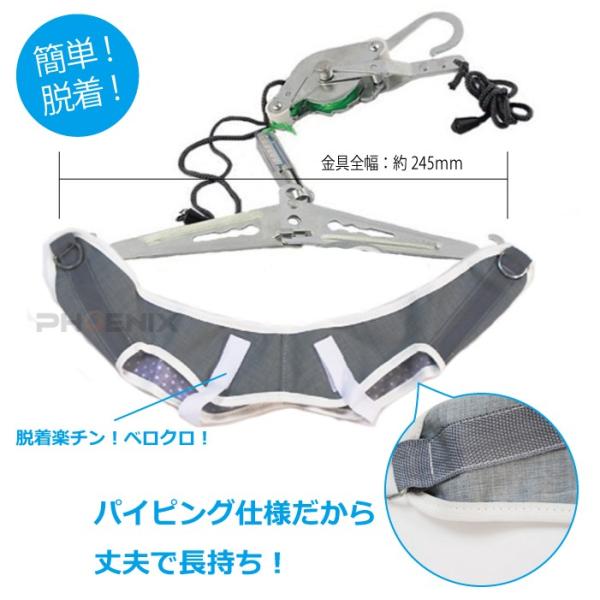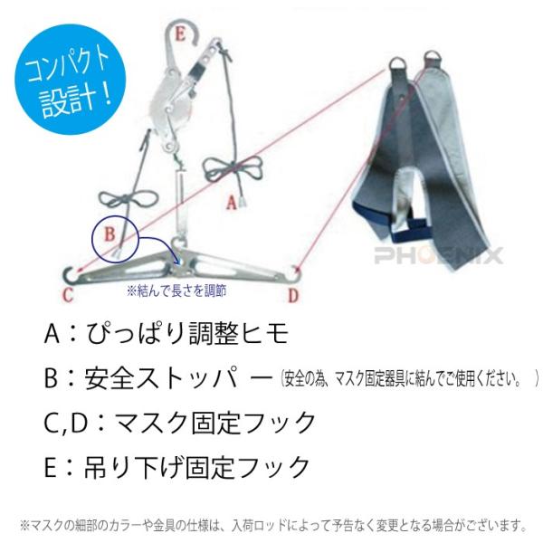 ・吊り下げ固定フックを設置する支点は、頑丈な場所(支点)をご使用ください。
