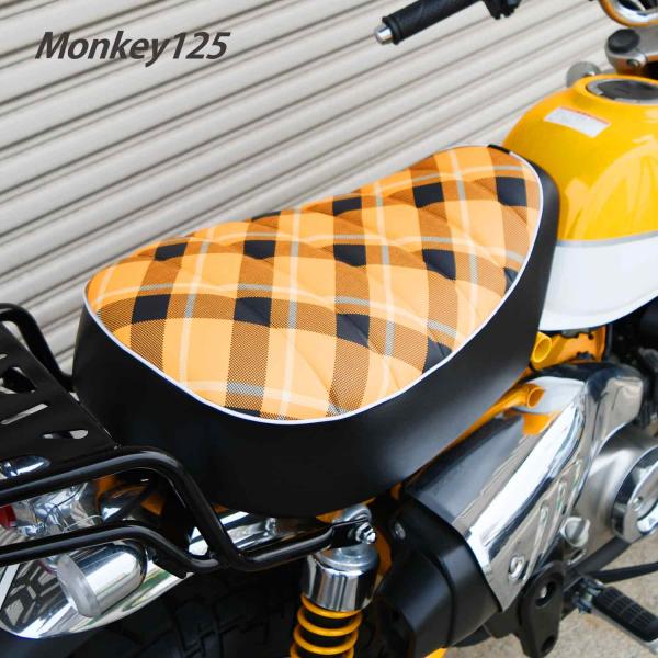 モンキー125 カスタム チェック柄 タックロール シート シングル イエロー レッド JB02 JB03 monkey 125cc 二輪 バイク