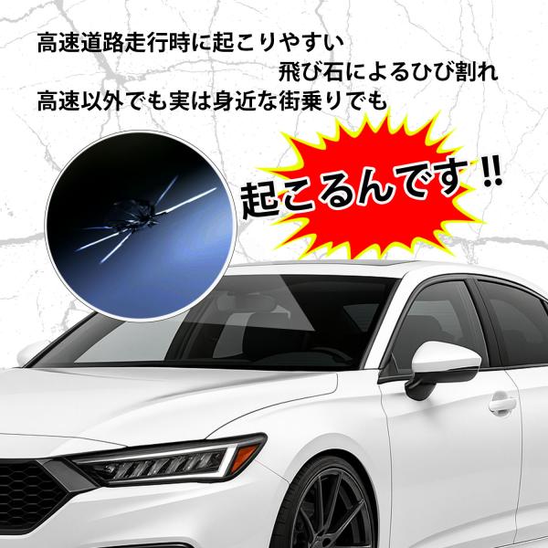 ※合わせガラスの内側ガラス層まで傷がある場合や 線状・クモの巣状の亀裂には使用できません。