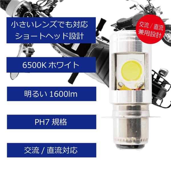 LED ヘッドライト バルブ ショートタイプ PH7 バイク