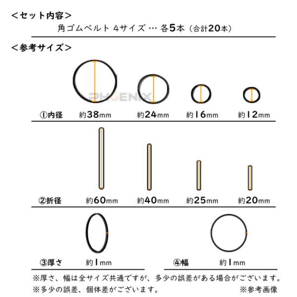 ■商品内容:角ゴムベルト4サイズ x 各5本