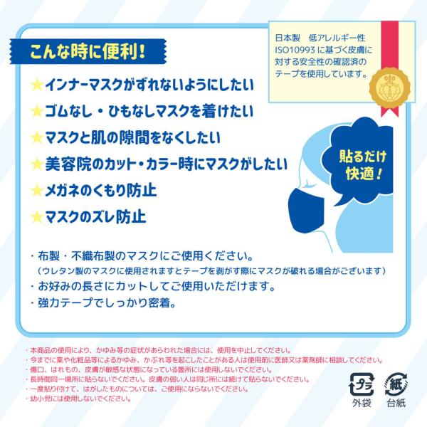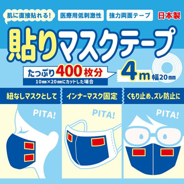 TVで紹介されました 日本製 貼りマスクテープ 4M×20mm 肌に直接貼れる 強力 医療用 無臭 両面テープ シールマスク 貼るマスク 低刺激 眼鏡の曇り止め