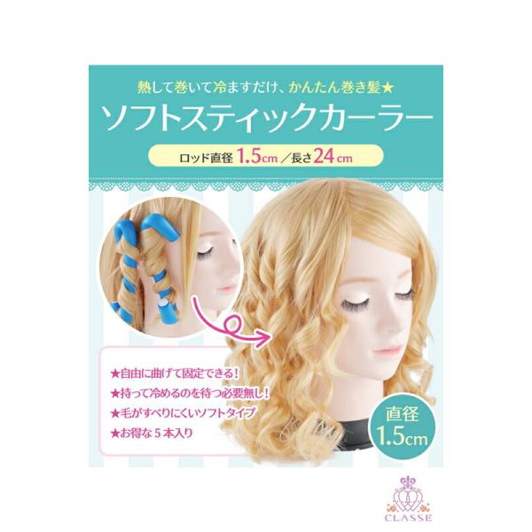 ソフトスティックカーラー ロッド直径1.5cm 長さ24cm 5本入り クラッセ CLASSE カールヘア カーリー パーマ 巻き髪 自由自在 ヘアセット ウィッグセット