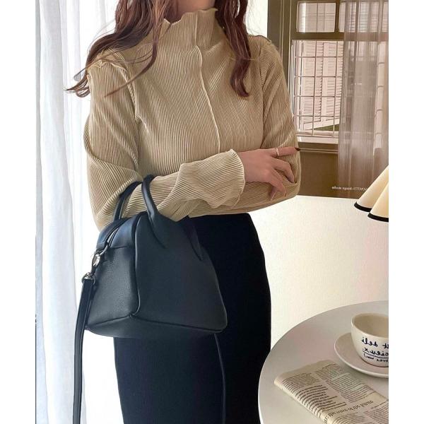 ★上品な光沢感。2wayメロープリーツハイネックトップス★