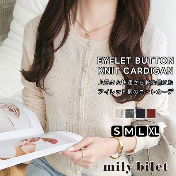 【mily bilet】トップス カーディガン レディース アイレット 柄 くるみ ボタン ニットカーデ レイヤードコーデ 羽織り 着回し ベーシック 大きいサイズ