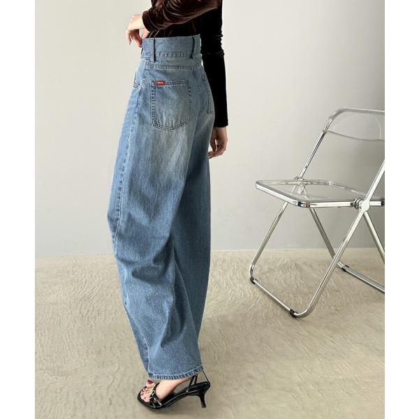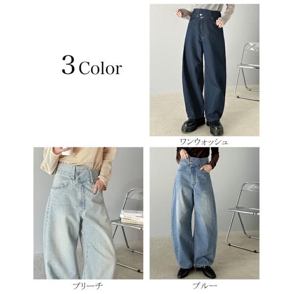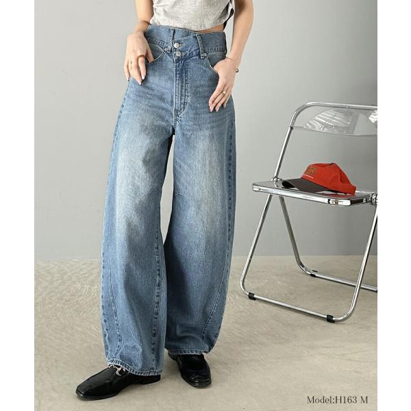 ボトムス パンツ レディース コットン 100% アシメ ウエスト カーブ デニム ワイド コクーン バルーン シルエット ハイウエスト スタイルアップ