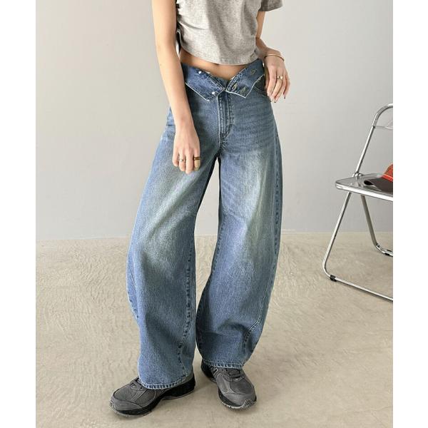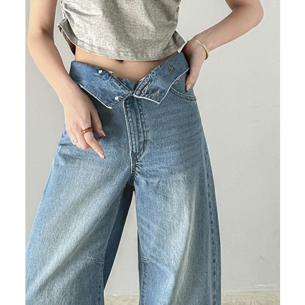 トレンド感抜群。アシメウエストカーブデニムパンツ