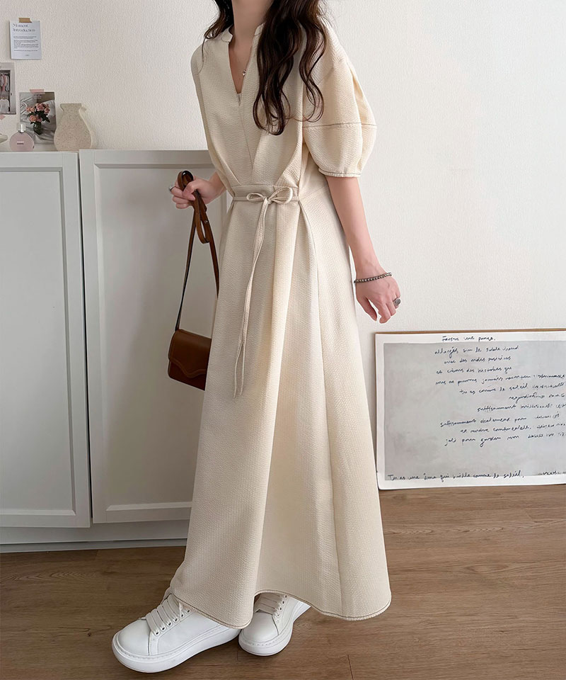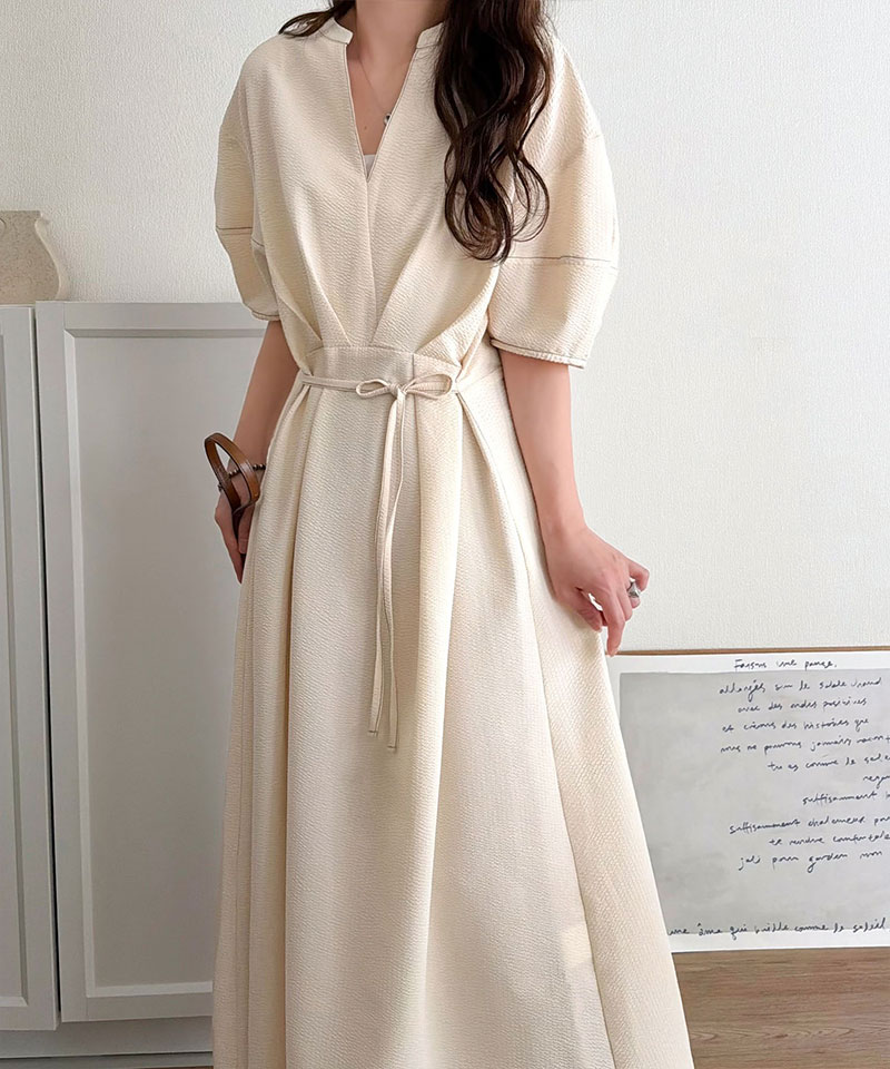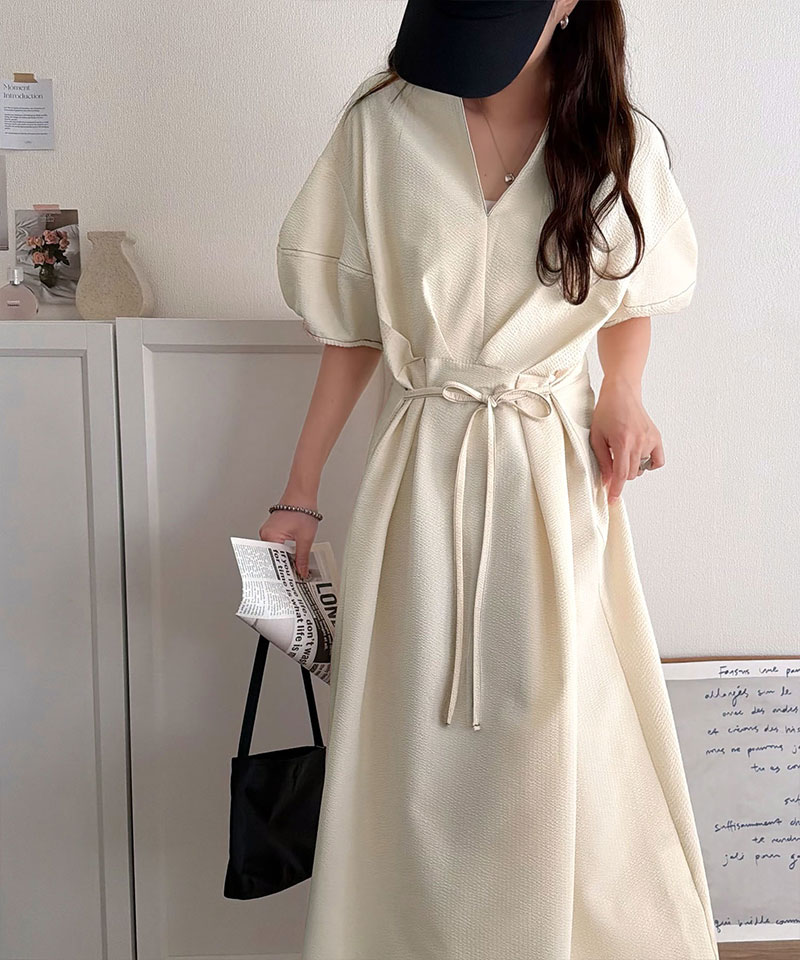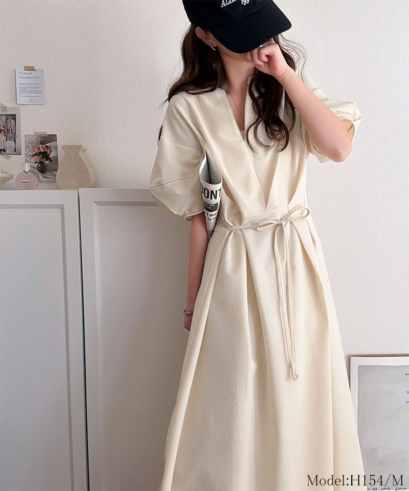 ウエストのリボンでお腹まわりがすっきりし、華奢見えも!