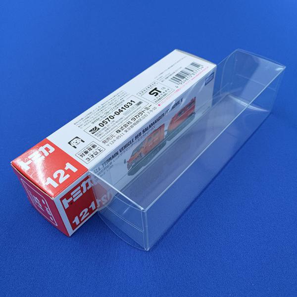 ロングトミカ(大)対応のクリアケースです。ロングトミカ(大)の紙箱がキッチリと入る様に作られています。