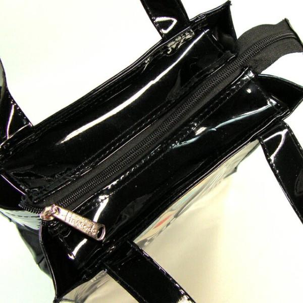 可愛いプリントが施されたPVCトートバック! ファスナー付のポケットが内部についています。