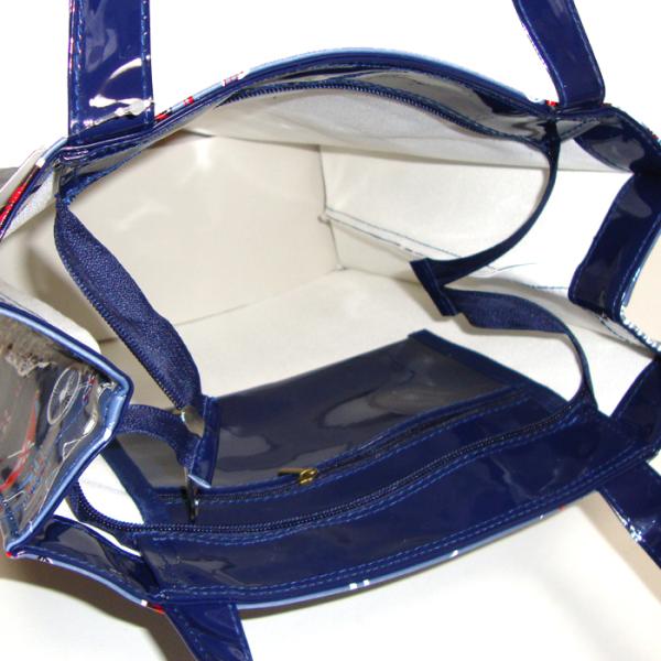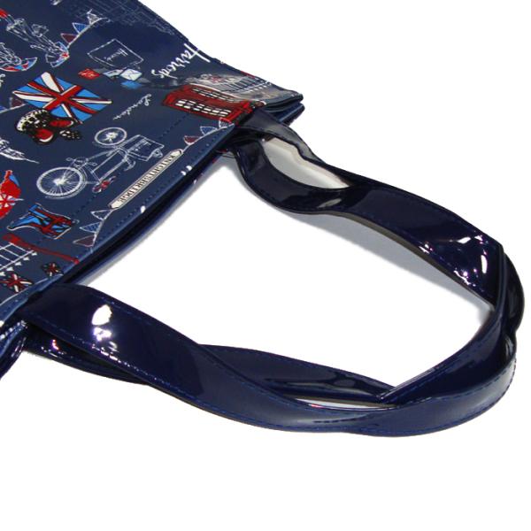 イギリスの象徴的なモチーフがプリントされたPVCトートバック! ファスナー付のポケットが内部についています。