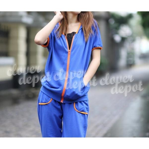 商品名:セットアップ レディース ルームウェア おしゃれ スウェット トップス ボトムス 上下セット 半袖 夏 薄手 Tシャツ ハーフパンツ 7分丈 ダンス 運動 スポーツ
