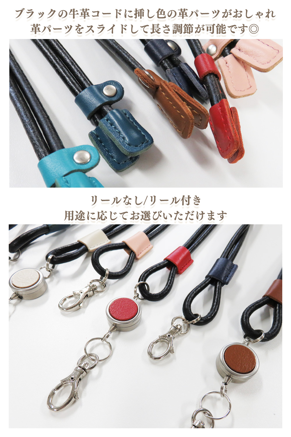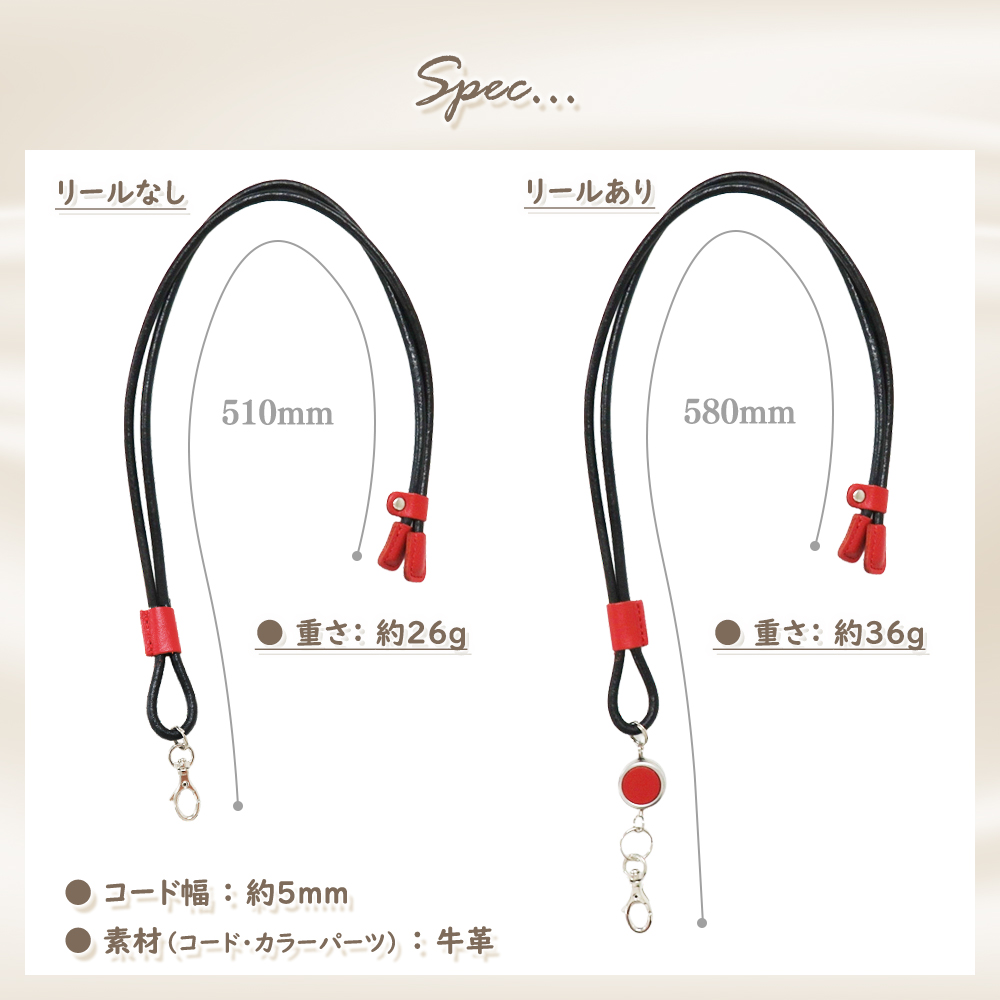 レザーコードネックストラップ 革 リール付き/リールなし イニシャル/マーク刻印 idケース用 ネームホルダー用 メンズ レディース プレゼント 誕生日 お祝い