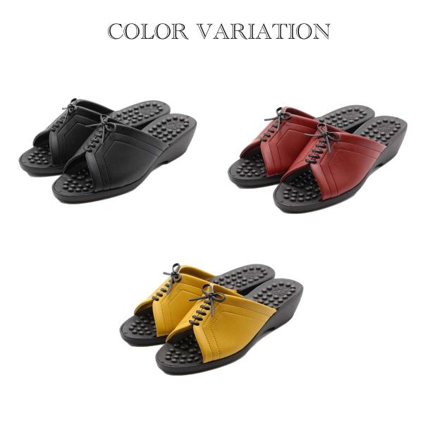 MODERATE モデラート サンダル ミュール つっかけ ヘップ レディース 靴 黒 ブラック 軽量 レースアップ 外履き スリッパ 健康サンダル 前あき 10-1115