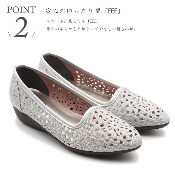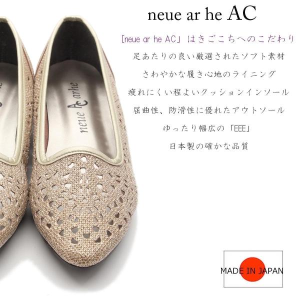 neue ar he AC パンプス ローヒール パンプス きらきら 低反発クッション 日本製 痛くない 3E 10-2048