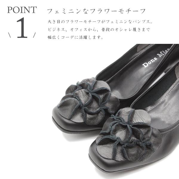 Dona Miss ドナミス パンプス 本革 日本製 レザーパンプス 痛くない 5.5cm 走れる レディース 柔らかい 黒 靴 41-467