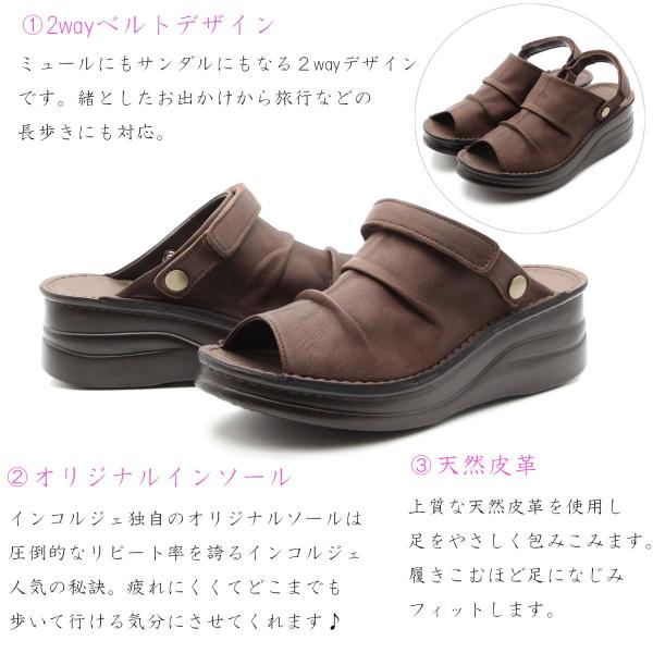 インコルジェ In Cholje サンダル レディース ストラップ レザー 本革 3E 日本製 コンフォート 痛くない 走れる ic4039