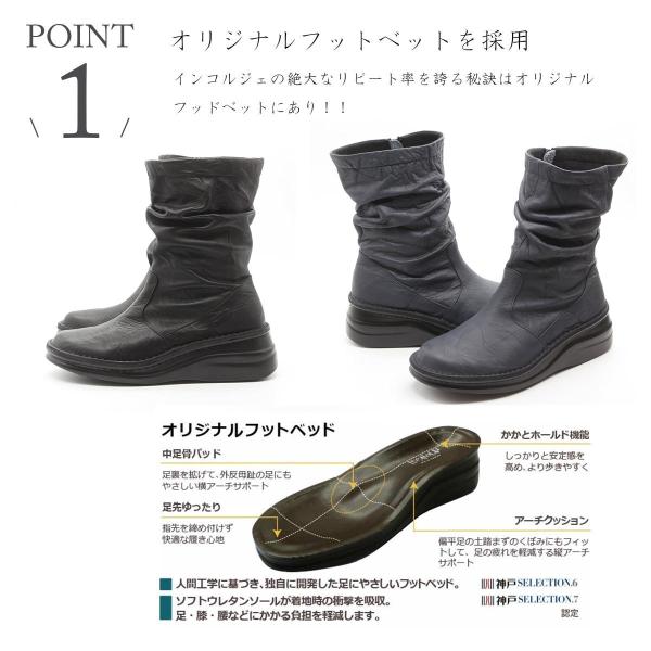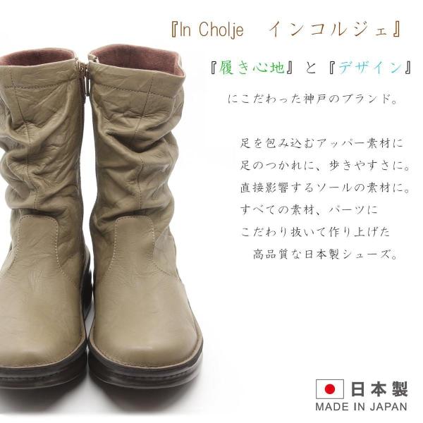 In Cholje インコルジェ 本革 ブーツ 日本製 コンフォートブーツ 3E レザー 幅広 靴 レディース 天然皮革 痛くない ic82453