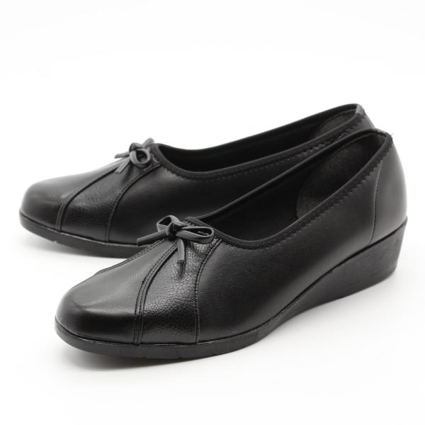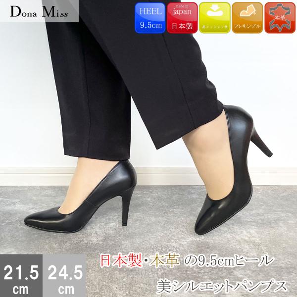 Dona Miss ドナミス パンプス 本革 日本製 レザーパンプス リボン 痛くない 4.0cm 走れる レディース 柔らかい 黒 靴 41-736