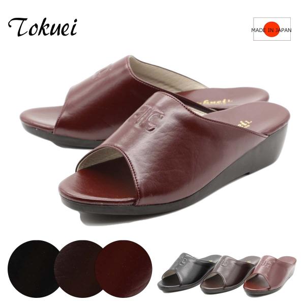 Tokuei 徳映化学工業所 トクエイ サンダル ミュール つっかけ ヘップ レディース 靴 黒 ブラック 軽量 外履き スリッパ 前あき 日本製 国産 10-508