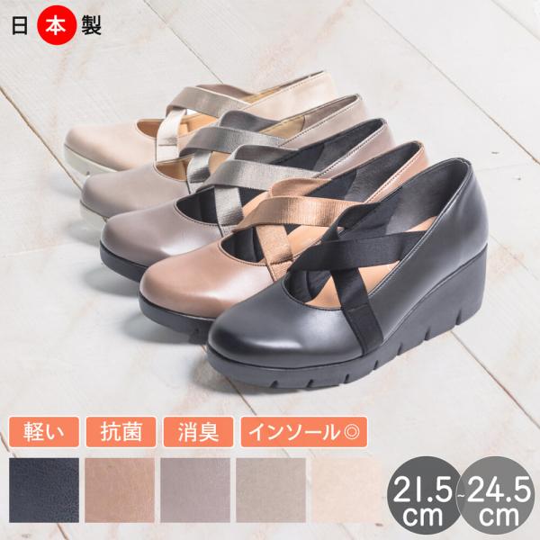 First Contact ファーストコンタクト 日本製 パンプス レディース ウェッジソール クロス ストラップ ベルト 厚底 脱げない 歩きやすい オフィス 通勤 im39619
