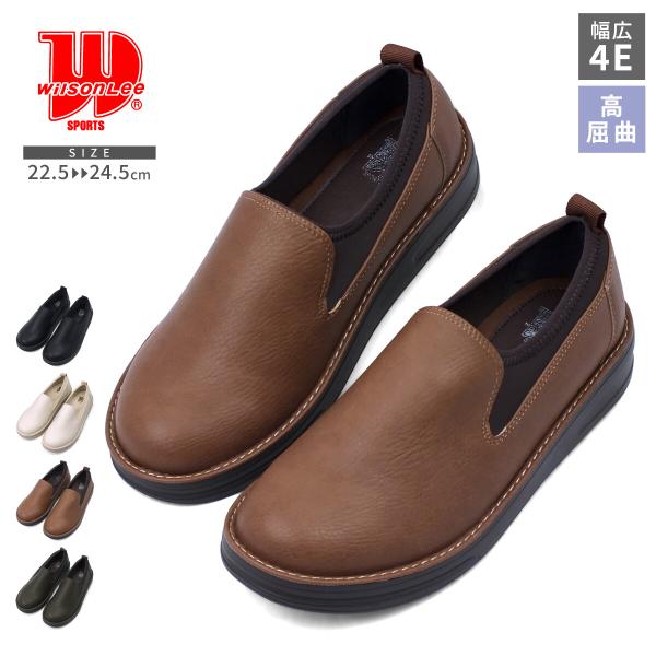 Wilson Lee SPORTS ウィルソンリースポーツ スリッポン カジュアルシューズ 4E 幅広 ストレッチ 防滑 コンフォート ローカット スニーカー フラット 厚底 kk5871