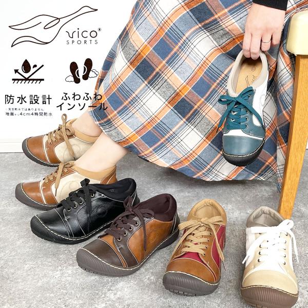 カジュアルシューズ レースアップ 防水 痛くない 柔らかい ふわふわ 靴 シューズ スリッポン 幅広 3E クッション性 防水加工 vico 48-7841