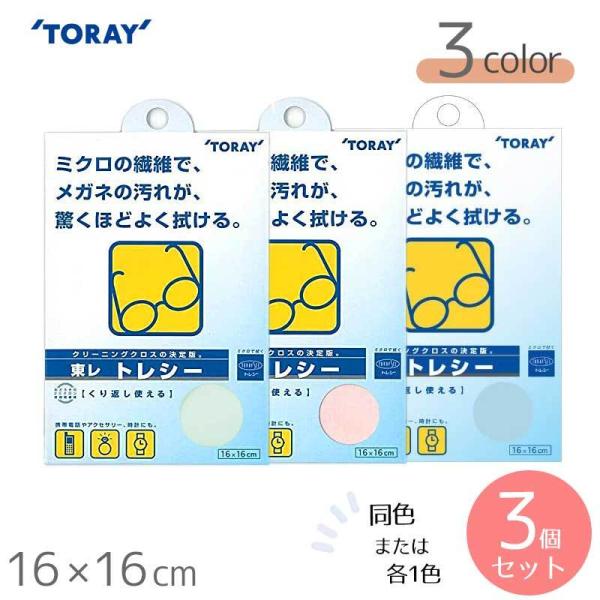 東レ トレシー カラークロス 無地 16×16cm 全3色 ×3個セット【メール便対応】メガネ拭き TORAY Toraysee