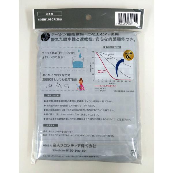 テイジン あっちこっち水切りマット グレー 食器用 収納 抗菌 吸水 速乾 マイクロファイバー 帝人 TEIJIN ていじん メール便 日本製