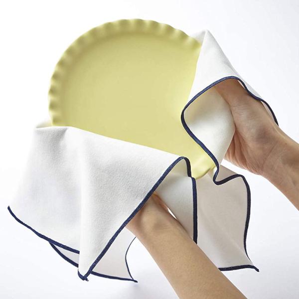 バツグンの吸水速乾性。拭き筋も残りにくく毛羽立ちもないので、サッと一拭きで食器がスッキリ。