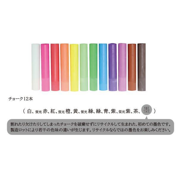ホタテ貝殻を再利用した環境にやさしいダストレスチョークを12色詰め合わせています