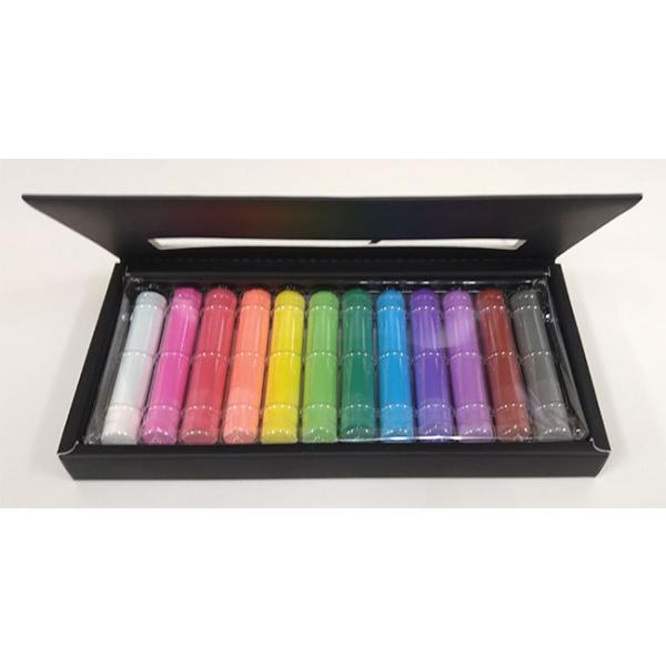 [白、蛍光赤、紅(新色)、蛍光橙、黄、蛍光緑、緑、青、紫、蛍光紫、茶、墨(新色)]