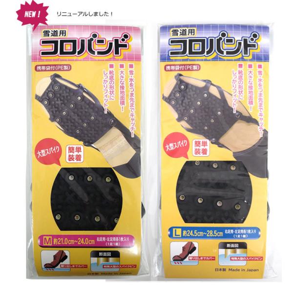 コロバンド 簡単脱着 ツルツル路面のパートナー 旅行、通勤、突然の降雪でも快適歩行! 路面凍結 滑り止め 靴 日本製 【メール便対応】