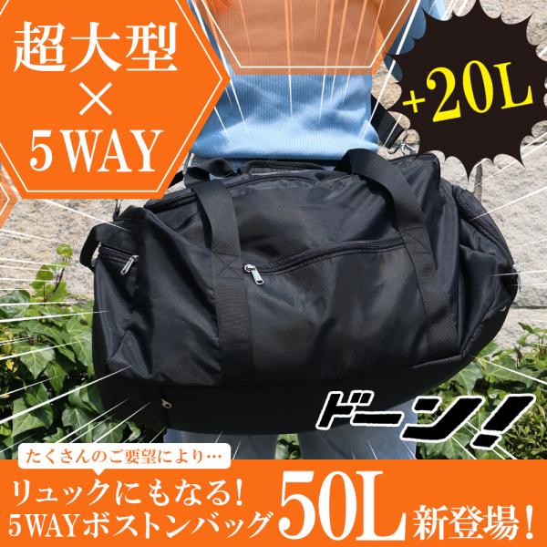 ボストンバッグ 5WAY リュック 大容量 軽量 撥水 防水ポケット レディース メンズ 旅行 修学旅行 出張 キャリーオン 機内持ち込み 30L 50L