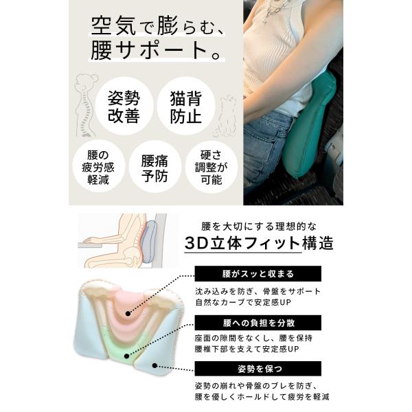 腰 クッション 携帯腰用 エアークッション 腰枕 携帯 空気式 ポンプ式 トラベル 飛行機 車 夜行バス オフィス 旅行 便利グッズ 軽量 コンパクト 収納袋付き