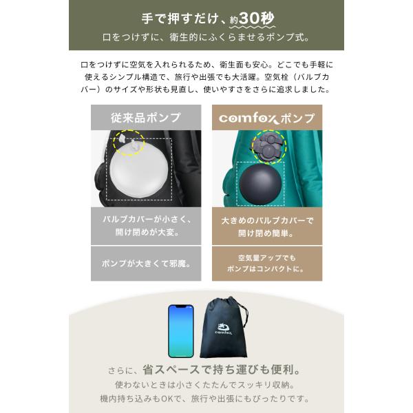 衛生的なポンプ式で、口をつけずに空気を入れられる携帯腰用クッション。